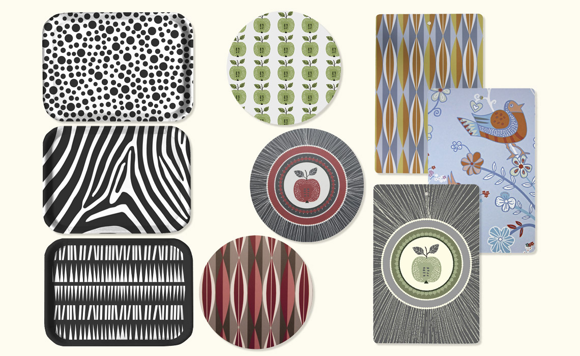 Mönster i egen design. Produkterna är unika och finns enbart i liten upplaga. Allt är tillverkat i Sverige i miljöcertifierat trä.