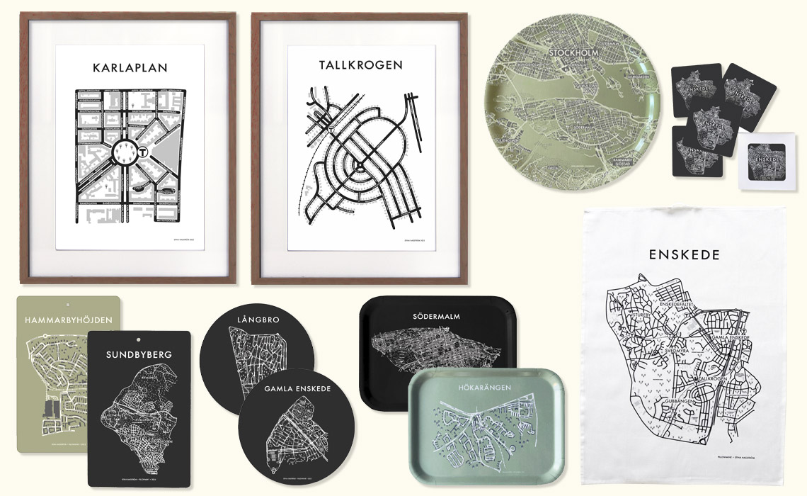 Jag gillar det unika och personliga, därför ritar jag in varje hus på mina kartor! Det har blivit ganska många områden under de år jag hållit på och fler blir det. Jag började i Enskede och har nu ritat stora delar av Stockholm!