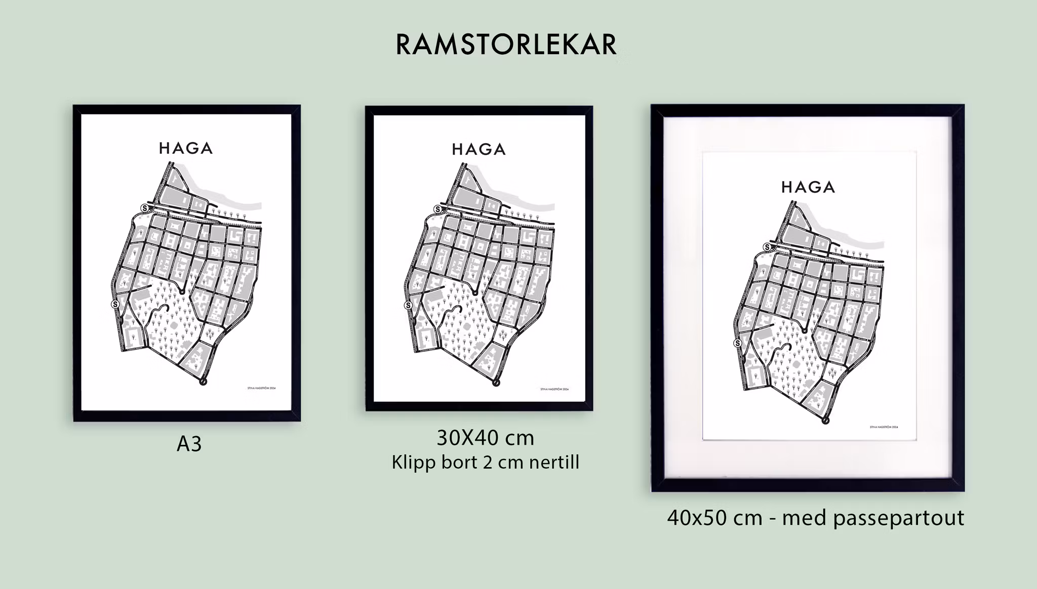 A3, 30x40 cm (kapa affischen 1 cm på varje sida)